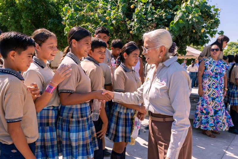 “Ver esa transformación en ese espacio, la verdad es que sí, es un sueño hecho realidad; tener un espacio digno, un espacio que les va a dar a ustedes como padres de familia la tranquilidad de que sus hijos están en un lugar seguro, en un lugar en donde tienen todo lo necesario para pasar las horas de estudio en plenas condiciones benéficas para todos ellos. De verdad que es un momento lleno de emoción, porque si algo ha caracterizado al gobernador del estado, a mi esposo, el doctor Miguel Ángel Navarro Quintero, es su compromiso con la educación y con la salud; y ustedes saben que sin educación no va a haber transformación, entonces, desde aquí estamos transformando”, expresó la doctora Beatriz Estrada Martínez.