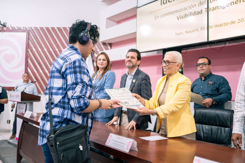 La presidenta del Sistema DIF Nayarit, doctora Beatriz Estrada Martínez, encabezó la entrega de reconocimientos de identidad de género expedidos por el Registro Civil del Estado de Nayarit, con el objetivo de promover el respeto, la igualdad y la inclusión, en el marco del Día Internacional de la Visibilidad Transgénero.