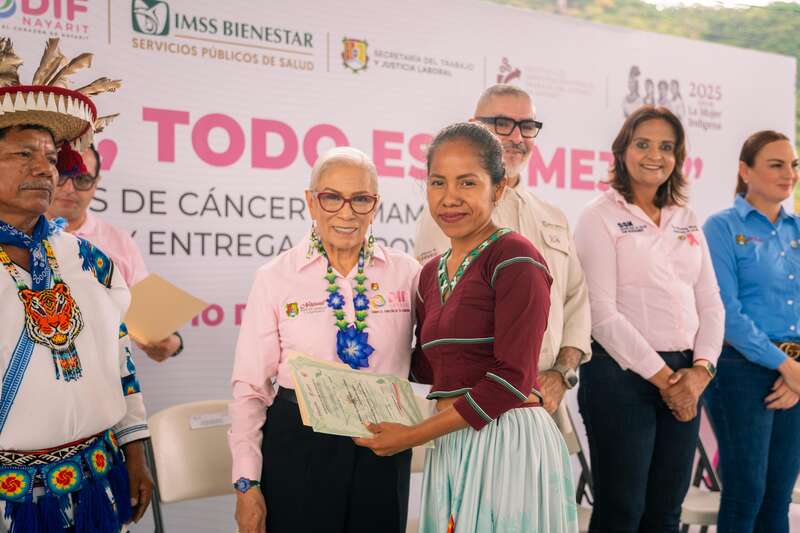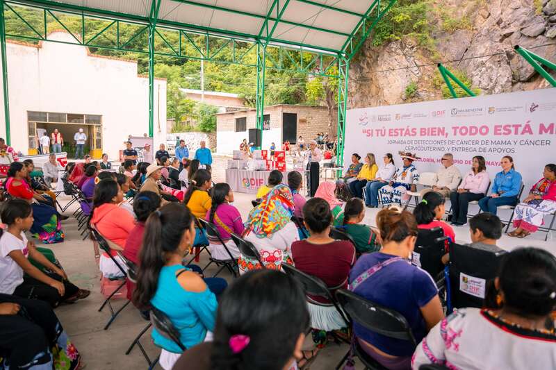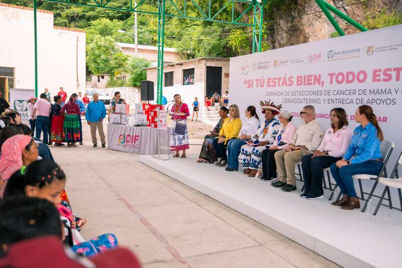 Con empatía y cercanía, la presidenta del Sistema DIF Nayarit, doctora Beatriz Estrada Martínez, encabezó en la comunidad de El Colorín, municipio de Del Nayar, una jornada integral de salud, bienestar y capacitación bajo el lema “Si tú estás bien, todo está mejor”, en conmemoración del mes de sensibilización sobre el cáncer de mama. Además, se entregaron sueros antialacrán para prevenir muertes por dicha causa.