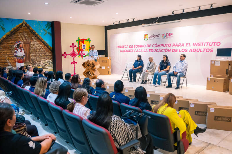 Con el objetivo de fortalecer el equipamiento necesario para el impulso de la educación de las personas adultas, la presidenta del Sistema DIF Nayarit, doctora Beatriz Estrada Martínez, encabezó la entrega de 50 computadoras al Instituto Nacional para la Educación de los Adultos (INEA), como parte de un compromiso del gobernador del estado, Miguel Ángel Navarro Quintero, quien previamente había destinado otras 100 computadoras a dicho instituto.