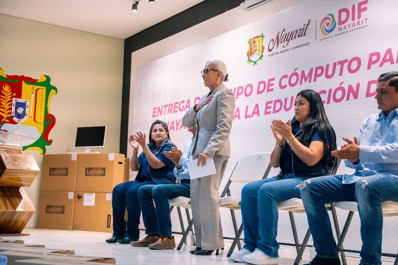 “Me siento muy orgullosa de hacer entrega por parte del gobernador del estado, por parte de mi esposo, el doctor Miguel Ángel Navarro Quintero, de estas 50 computadoras. Yo estoy segura de que estas herramientas, estas computadoras, no nada más les sirven para leer y escribir o para terminar su educación básica, también son los elementos necesarios que les van a permitir a todos los educandos fortalecer sus habilidades y destrezas para seguir avanzando. Lo único que necesitamos es el atrevimiento, el atreverse, el deseo de seguir adelante, porque no hay edad para aprender. Hagamos que este Nayarit sea un Nayarit educado, preparado, que sea no un estado de moda, que sea un modelo nacional en educación”.