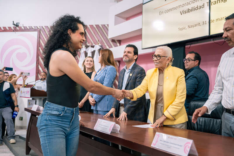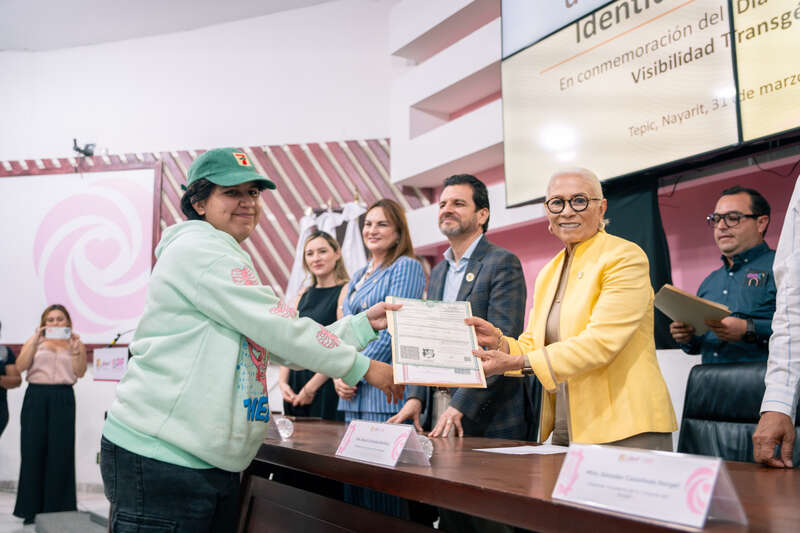 La presidenta del Sistema DIF Nayarit, doctora Beatriz Estrada Martínez, encabezó la entrega de reconocimientos de identidad de género expedidos por el Registro Civil del Estado de Nayarit, con el objetivo de promover el respeto, la igualdad y la inclusión, en el marco del Día Internacional de la Visibilidad Transgénero.
