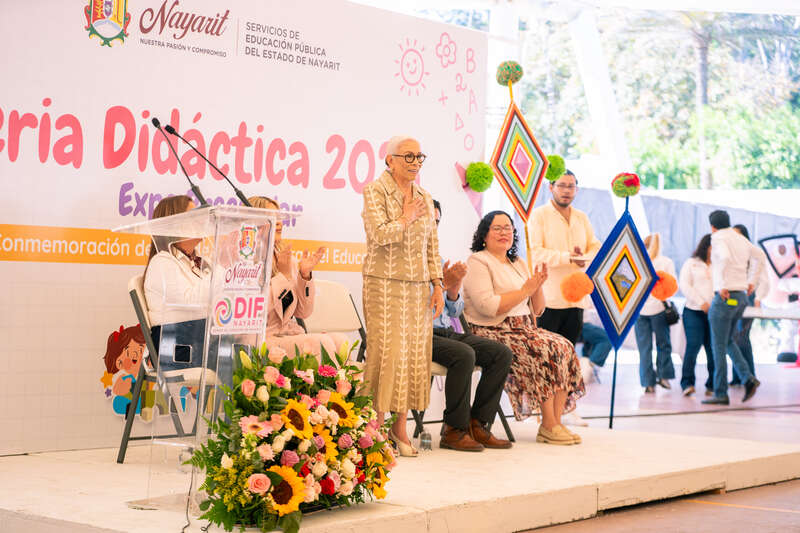 En el marco de la conmemoración del Día de la Educadora y el Educador, la presidenta del Sistema DIF Nayarit, doctora Beatriz Estrada Martínez, encabezó la Feria Didáctica 2026 Expo Preescolar, en el parque La Loma, en Tepic, con el objetivo de compartir propuestas didácticas de los distintos campos formativos que se desarrollan dentro de los Servicios de Educación Pública del Estado de Nayarit.